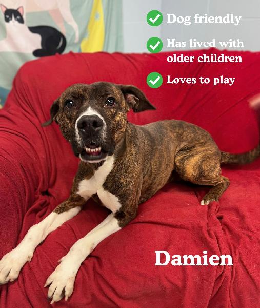 If you are interested in Damien phone 540-921-2053 for an appointment to meet him at Giles County Animal Shelter. We are open Monday - Saturday 12pm-4pm by appointment only, Closed Sunday and Holidays.