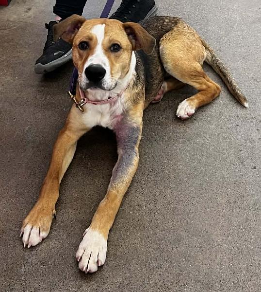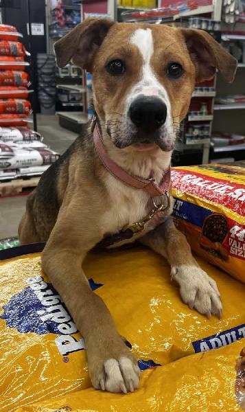 She is only a year old and we hate that she is spending such a formative time in a shelter. She is friendly with everyone (as you can see), treat motivated, and she loves to help you shop.