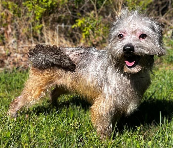 Notes: It is sad when the shelter is an upgrade from how they were living. Ping Pong was literally living in his small crate, in feces and urine, all day and all night. The tan hair is not supposed to be there. That is a 'tide mark' stain caused by the urine he was laying in. Three baths later, a trim, and he is feeling like a new dog. He is 5 years old, lived with other dogs and cats. He is kind of confused about leashes. He can be a little spicy and required a muzzle for the grooming but he yearns to be a lap dog!