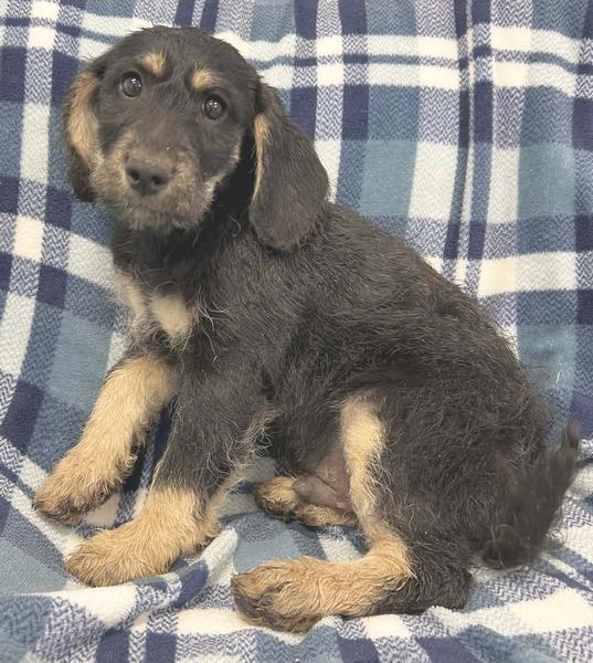 Notes: We have had 6 eight week old puppies surrendered. All we know about them is that mom was a wirey-haired medium sized dog and dad was a medium sized black and tan dog. Therefore, they will likely be medium-sized dogs when they grow up. Some of them are outgoing, while others are shy and will need some confidence building. The photo's were taken before we cleaned them up. If you are interested in these EXTREMELY CUTE pups, please contact us.