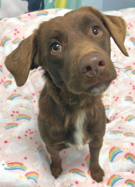 Notes: Macy, 14 month old female Lab mix. Due to no fault of her own, Macy was surrendered to us. She had spent the last 3 months outside on a tie out and is getting used to being back inside again. She is only about 40 pounds and pretty small in stature, but she is a little spitfire! This girl is all puppy, and has boat loads of energy. She grew up with small children, other dogs, and has been around cats.