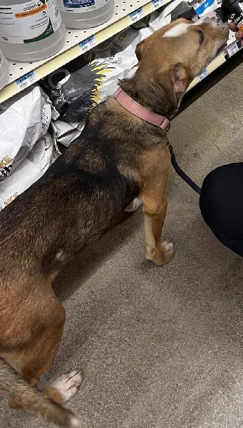 She is only a year old and we hate that she is spending such a formative time in a shelter. She is friendly with everyone (as you can see), treat motivated, and she loves to help you shop.