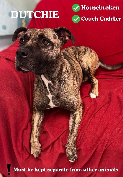 If you are interested in Dutchie phone 540-921-2053 for an appointment to meet him at Giles County Animal Shelter. We are open Monday - Saturday 12pm-4pm by appointment only, Closed Sunday and Holidays.